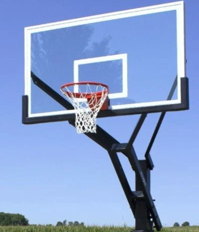 ● NBA regulation 42″ × 72″ tempered glass backboard (½” thick)